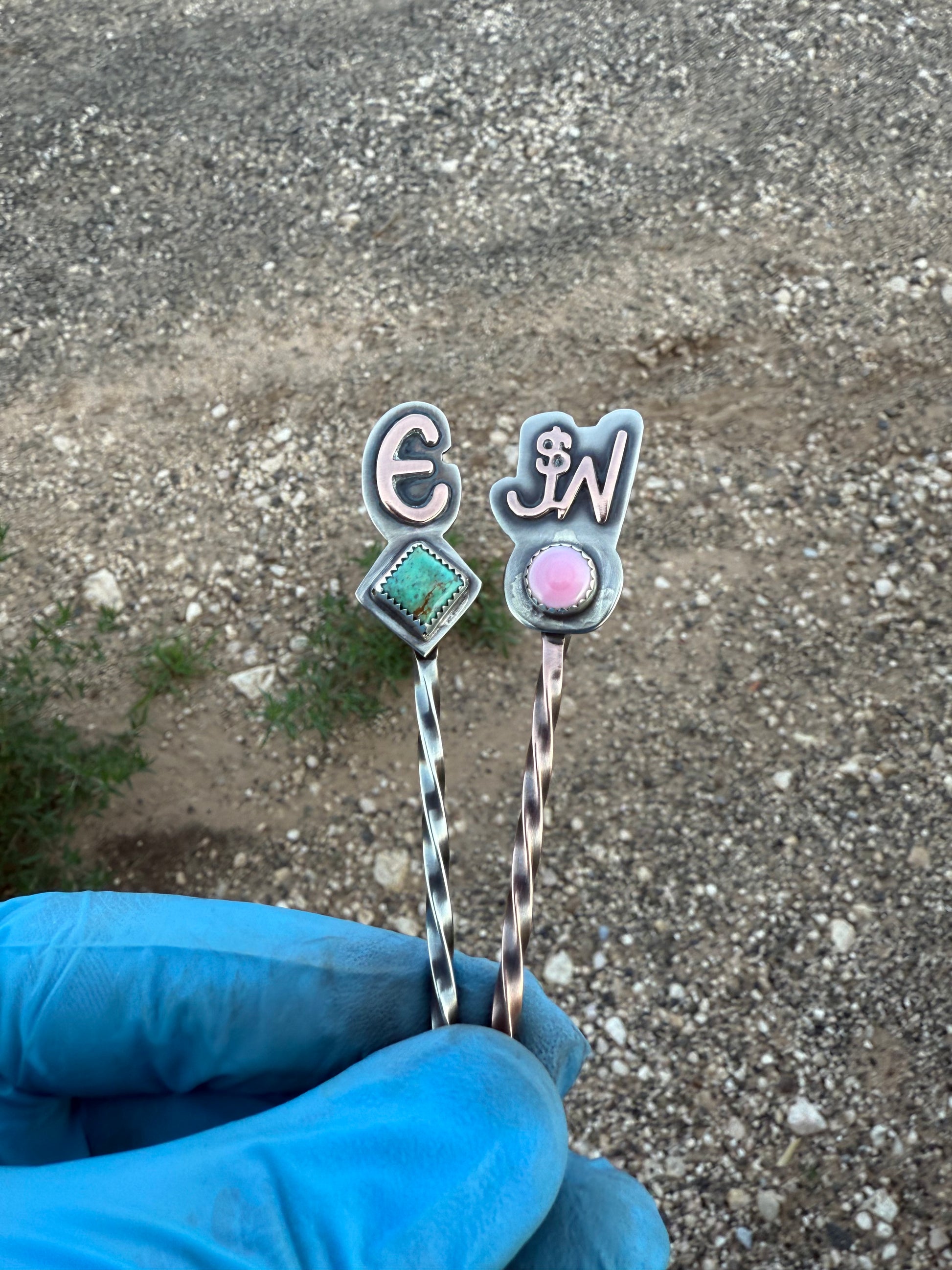 Custom Brand Cowboy Toothpick - Handmade Hat Pin With Genuine Turquoise